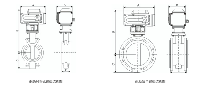 電動(dòng)對夾式蝶閥與電動(dòng)法蘭蝶閥的區(qū)別: